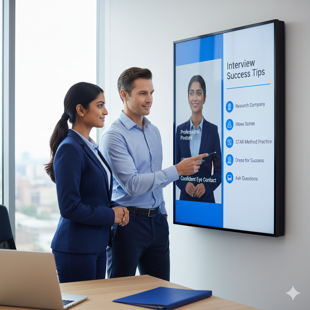 Ace your interviews with comprehensive preparation including mock sessions, communication skills, body language, resume writing, and professional etiquette. Stand out and make lasting impressions.